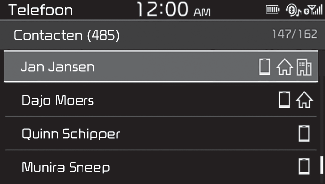 Als uw mobiele telefoon met het systeem is verbonden, kunt u iemand bellen door een naam uit uw oproepgeschiedenis of lijst met contacten te selecteren.