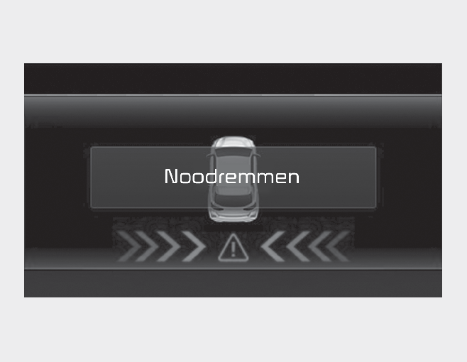 Wanneer de auto tot stilstand is gebracht door de noodrem, verschijnt de waarschuwingsmelding 'Drive carefully’ ('Rijd voorzichtig') op het instrumentenpaneel.