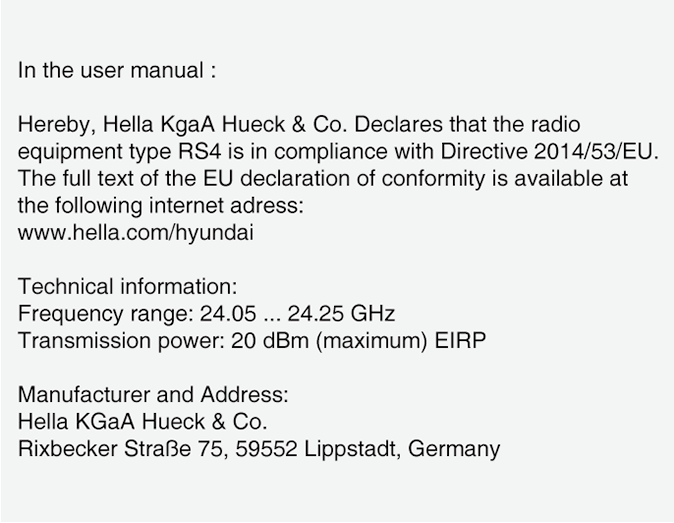 Radiotaajuiset komponentit (takakulmatutka) noudattavat seuraavia vaatimuksia: