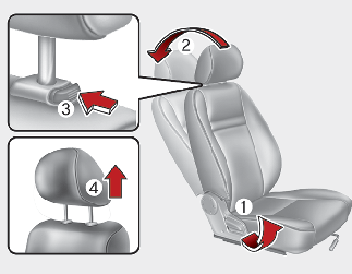 For maximum effectiveness in case of an accident, the headrest should be adjusted so the middle of the headrest is at the same height of the centre of gravity of an occupant's head. Generally, the centre of gravity of most people's head is similar with the height of the top of their eyes. Also, adjust the headrest as close to your head as possible. For this reason, the use of a cushion that holds the body away from the seatback is not recommended.