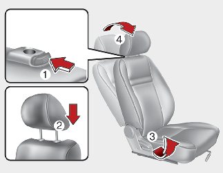 If you recline the seatback towards the front with the headrest and seat cushion raised, the headrest may come in contact with the sunvisor or other parts of the vehicle.