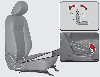 Lean forward slightly and lift up on the seatback recline lever located on the outside of the seat, at the rear.