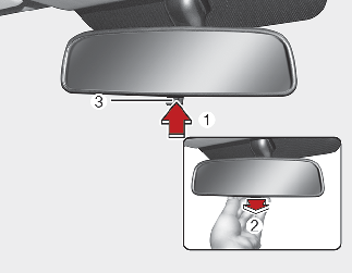 Pull the day/night lever (3) toward you to reduce the glare from the headlights of the vehicles behind you during night driving.