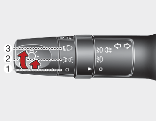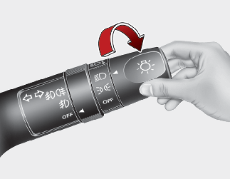 To operate the lights, turn the knob at the end of the control lever to one of the following positions: