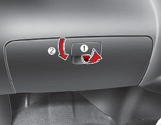 To open the glove box, pull the handle (1) and the glove box will automatically open (2). Close the glove box after use.