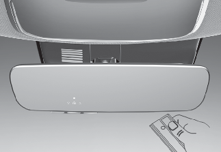 When cleaning the mirror, use a paper towel or similar material dampened with glass cleaner. Do not spray glass cleaner directly on the mirror. It may cause the liquid cleaner to enter the mirror housing.