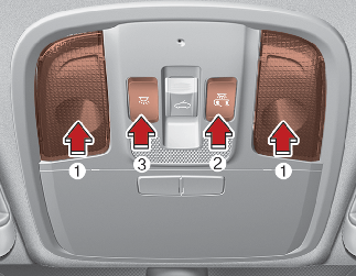 ON (3): Press this switch to turn the front and rear room lamps on and off.