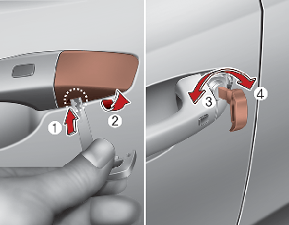 Turn the key counterclockwise (3) once to unlock driver's door and turn clockwise (4) once to lock driver's door.