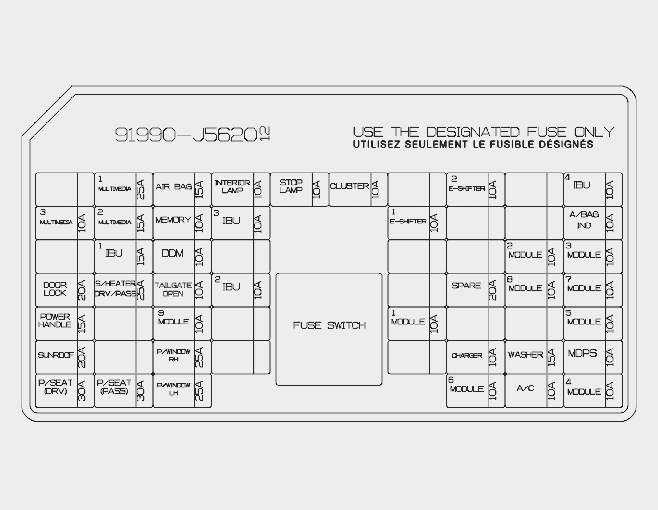 Instrument Panel Junction Block (Fuse - STOP LAMP/Leak Current Autocut Device (Fuse - INTERIOR LAMP, DDM, IBU3, MEMORY, MULTI MEDIA1, MULTI MEDIA2, MULTI MEDIA3)) |