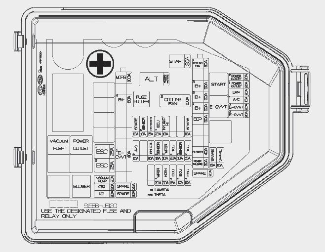 Inside the fuse/relay panel covers, you can find the fuse/relay label describing fuse/relay name and capacity.