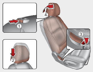 Press the headrest release button (3) whilst pulling the headrest up (4).