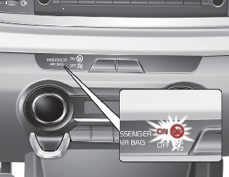 The passenger's front air bag ON indicator also comes on when the passenger's front air bag ON/OFF switch is set to the ON position and goes off after approximately 60 seconds.