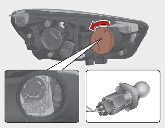 Remove the headlamp bulb cover by turning it counterclockwise.