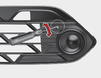 To aim the front fog lamp up or down, turn the driver clockwise or counterclockwise.