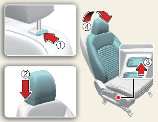 If you recline the seatback towards the front with the headrest and seat cushion raised, the headrest may come in contact with the sun visor or other parts of the vehicle.