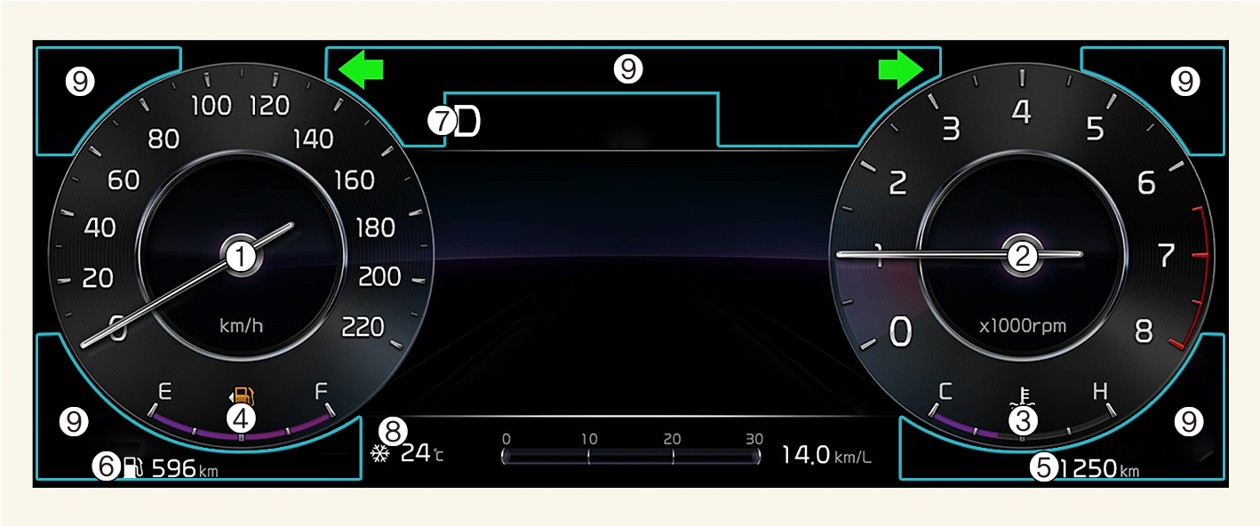 * The actual cluster in the vehicle may differ from the illustration.