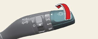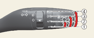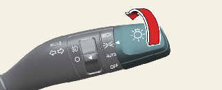 To operate the lights, turn the knob at the end of the control lever to one of the following positions: