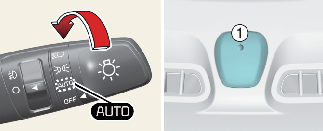 When the light switch is in the AUTO light position, the taillights and headlights will turn ON or OFF automatically depending on the amount of light outside the vehicle.