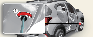 The child safety lock is located on the edge of each rear door. When the child safety lock is in the lock position (1), the rear door will not open if the inner door handle is pulled.