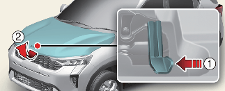 WARNINGOpen the bonnet after turning off the engine on a flat surface, shifting the shift lever to the P (Park) position for Automatic Transmission/Dual Clutch Transmission and to the 1st (First) gear or R (Reverse) for Manual Transmission, and setting the parking brake.