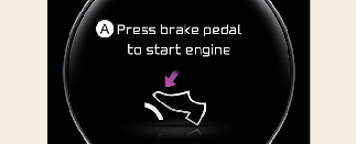 If you press the ENGINE START/STOP button without depressing the clutch pedal for manual transmission vehicles or without depressing the brake pedal for Intelligent Manual Transmission (iMT) or without depressing the brake pedal for automatic transmission/dual clutch transmission vehicles, the engine will not start and the ENGINE START/STOP button changes as follow: