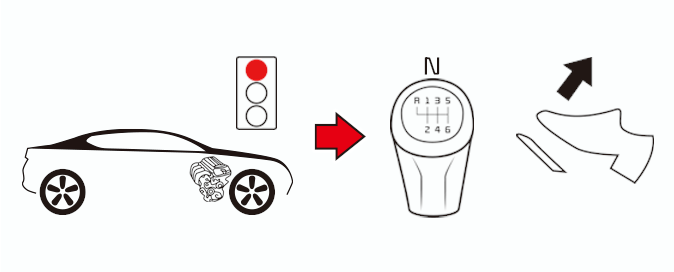 When the vehicle is slowed down to a speed below 5 km/h or temporarily stopped at a red light or brought to a standstill, release the clutch pedal in N (Neutral) position and the engine will shut down automatically.