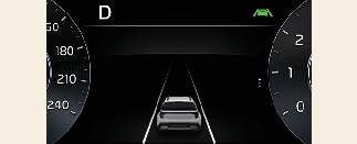 When lane markings (or road edges) are detected, the lane lines on the cluster will change from grey to white