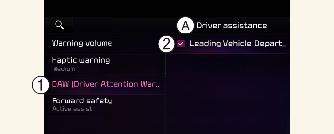 Driver Attention Warning settings