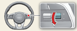 • Push the (-) switch down and release it immediately. The set speed will decrease by 1 km/h increments.To decrease the set speed quickly, push and hold th (-) switch. The set speed will decrease in increments of 10.If the cluster speed unit is mph, it will decrease in multiples of 5.