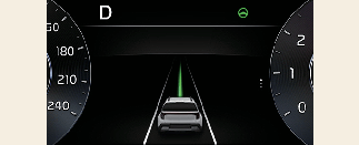 If the vehicle ahead and/or both lane markings are detected and Your driving speed is below 200 km/h (120 mph), the green