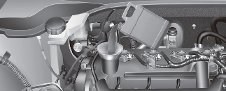 Be very careful not to touch the radiator hose when checking or adding the engine oil as it may be hot enough to burn you.
