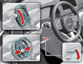 Adjust the steering wheel to the desired angle (2) and height (3).