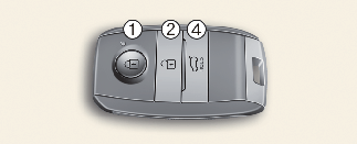 Within 4 seconds after locking the doors, press and hold the remote start button (3) for over 2 seconds.