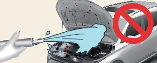 When using high-pressure washers, make sure to maintain sufficient distance from the vehicle.