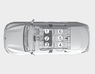 *2. Note : The seating position (number 5) is not suitable for fitment of child restraint system with support leg.