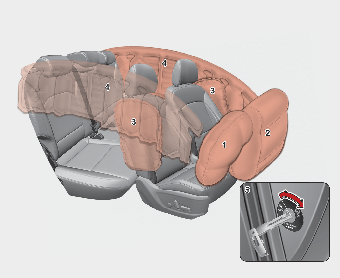 * The actual air bags and seats in the vehicle may differ from the illustration.