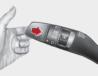 To turn on the high beam headlamp, push the lever away from you. The lever will return to its original position.