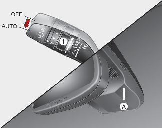 The rain sensor (A) located on the upper end of the windscreen glass senses the amount of rainfall and controls the wiping cycle for the proper interval. The more it rains, the faster the wiper operates. When the rain stops, the wiper stops.
