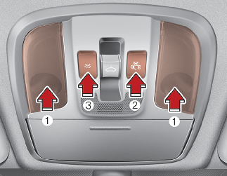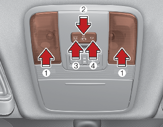 (3): Press this switch to turn the front and rear room lamps on and off.