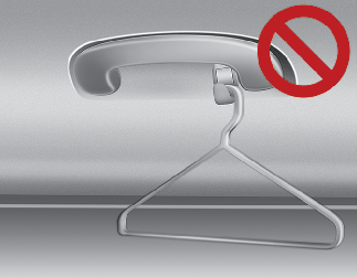 Do not hang other objects such as hangers or hard objects except clothes. Also, do not put heavy, sharp or breakable objects in the clothe pockets. In an accident or when the curtain air bag is inflated, it may cause vehicle damage or personal injury.