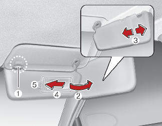 To use the vanity mirror, pull down the visor and slide the mirror cover (4).