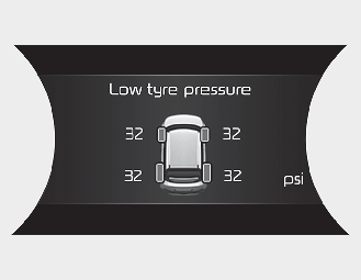 When the tyre pressure monitoring system warning indicators are illuminated and warning message displayed on the cluster LCD display, one or more of your tyres is significantly under-inflated. The low tyre pressure position telltale light will indicate which tyre is significantly under-inflated by illuminating the corresponding position light.
