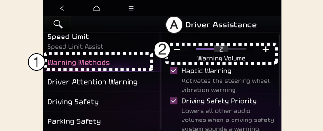 Se till att Varningsmetoder som du har ställt in kan tillämpas på Varningsmetoder för andra förarassistanssystem.