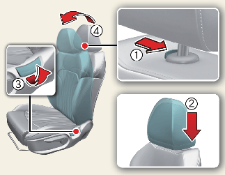 If you recline the seatback towards the front with the headrest and seat cushion raised, the headrest may come in contact with the sun visor or other parts of the vehicle.