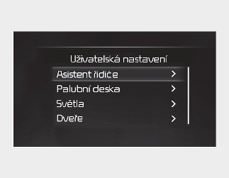 Z bezpečnostních důvodů upravujte Uživatelské nastavení vždy až po zaparkování vozidla, aktivaci parkovací brzdy a přesunutí páky voliče do polohy P (Parkování).