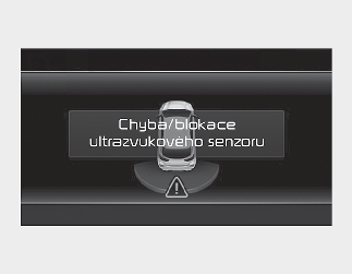 • Na přístrojovém panelu se zobrazí varovná zpráva „Ultrasonic sensor error or blockage“ (Chyba nebo zablokování ultrazvukového senzoru).