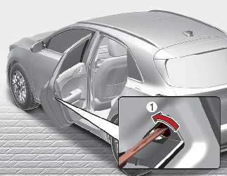 Klíč vsuňte do klíčové dírky pro nouzové uzamčení a zamkněte otočení klíčem směrem ven z vozidla (1).