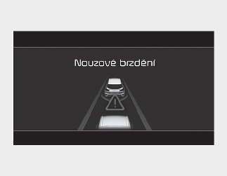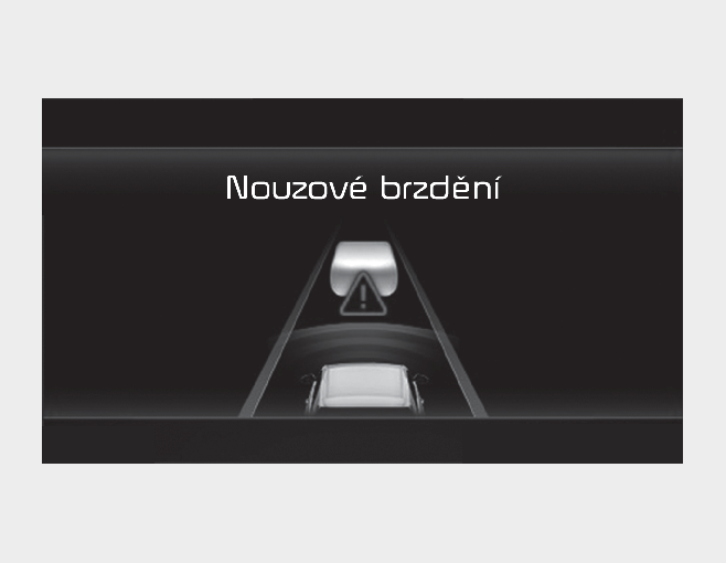 Je-li nutné upozornit řidiče, že dojde k asistovanému nouzovému brzdění, na přístrojovém panelu se zobrazí výstražná zpráva „Emergency braking“ (Nouzové brzdění), zazní výstražný zvukový signál a volant zavibruje.