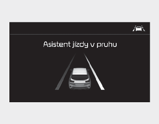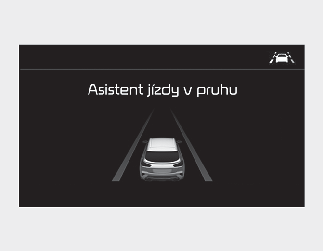 • Jsou-li detekována značení jízdních pruhů nebo krajnic vozovky, a funguje asistent udržování v jízdním pruhu, změní se barva symbolů čar na přístrojovém panelu ze šedé na zelenou ( nebo ) a rozsvítí se kontrolka.