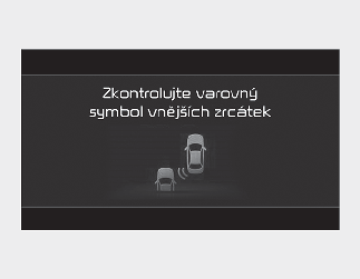 Pokud výstražné světlo na vnějším zpětném zrcátku nefunguje správně, zobrazí se na přístrojovém panelu výstražná zpráva „Check side view mirror warning light“ (Zkontrolujte výstražné světlo na bočním zpětném zrcátku). Doporučujeme nechat vozidlo zkontrolovat u autorizovaného prodejce/servisního partnera Kia.